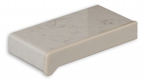 Подоконник из высокопрочного материала LIGNODUR. Основа – смесь ПВХ и древесной муки. Для соединения с декоративным многослойным ламинатом ELESGO-PLUS on top? используется полиуретановый клей-расплав KLEIBERIT.