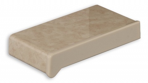 Подоконник из высокопрочного материала LIGNODUR. Основа – смесь ПВХ и древесной муки. Для соединения с декоративным многослойным ламинатом ELESGO-PLUS on topo используется полиуретановый клей-расплав KLEIBERIT.
