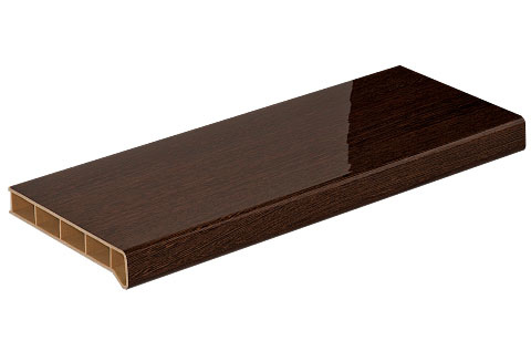Подоконник из высокопрочного материала LIGNODUR. Основа – смесь ПВХ и древесной муки. Для соединения с декоративным многослойным ламинатом ELESGO-PLUS on top? используется полиуретановый клей-расплав KLEIBERIT.